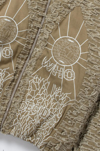 The WDW Husk Down Jacket is 100% cotton and features a traditional fit with a boxy, slightly cropped fit. Stained glass embroidery, d istressing throughout. Follow your normal size. Processing takes 1-2 days, shipping in the US 3-4 days, internationally 7-10 days.