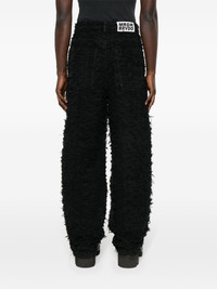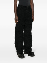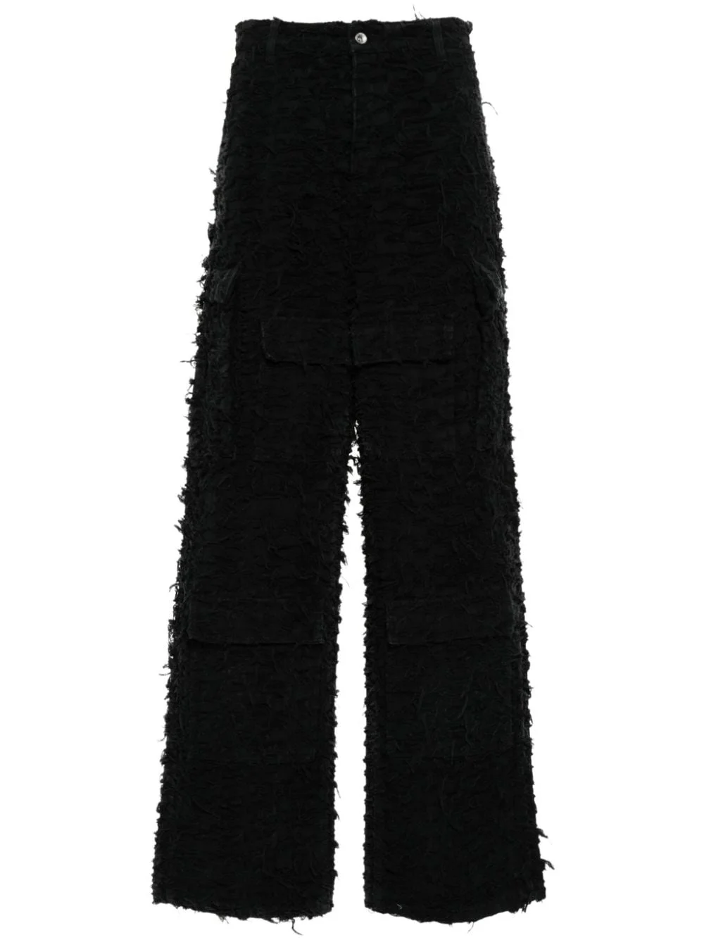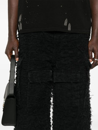 Husk wide-leg trousers Highlights - Black - Cotton - Distressed finish - Fringe detailing - Ripped detailing - Belt loops - Two side inset pockets - Multiple front flap pockets - Wide leg - Concealed fly and button fastening Imported Composition Cotton 100% SIZE & FIT Model measurements Height 6 ft 0 in(1.84 m) Bust/Chest 35.82 in(91 cm) Hips 37 in(94 cm) Waist 28.34 in(72 cm) FittingInformation Designed with a wide leg, offering a loose and roomy fit Made from a heavyweight non-stretch fabric This piece fits true to size – take your usual size
