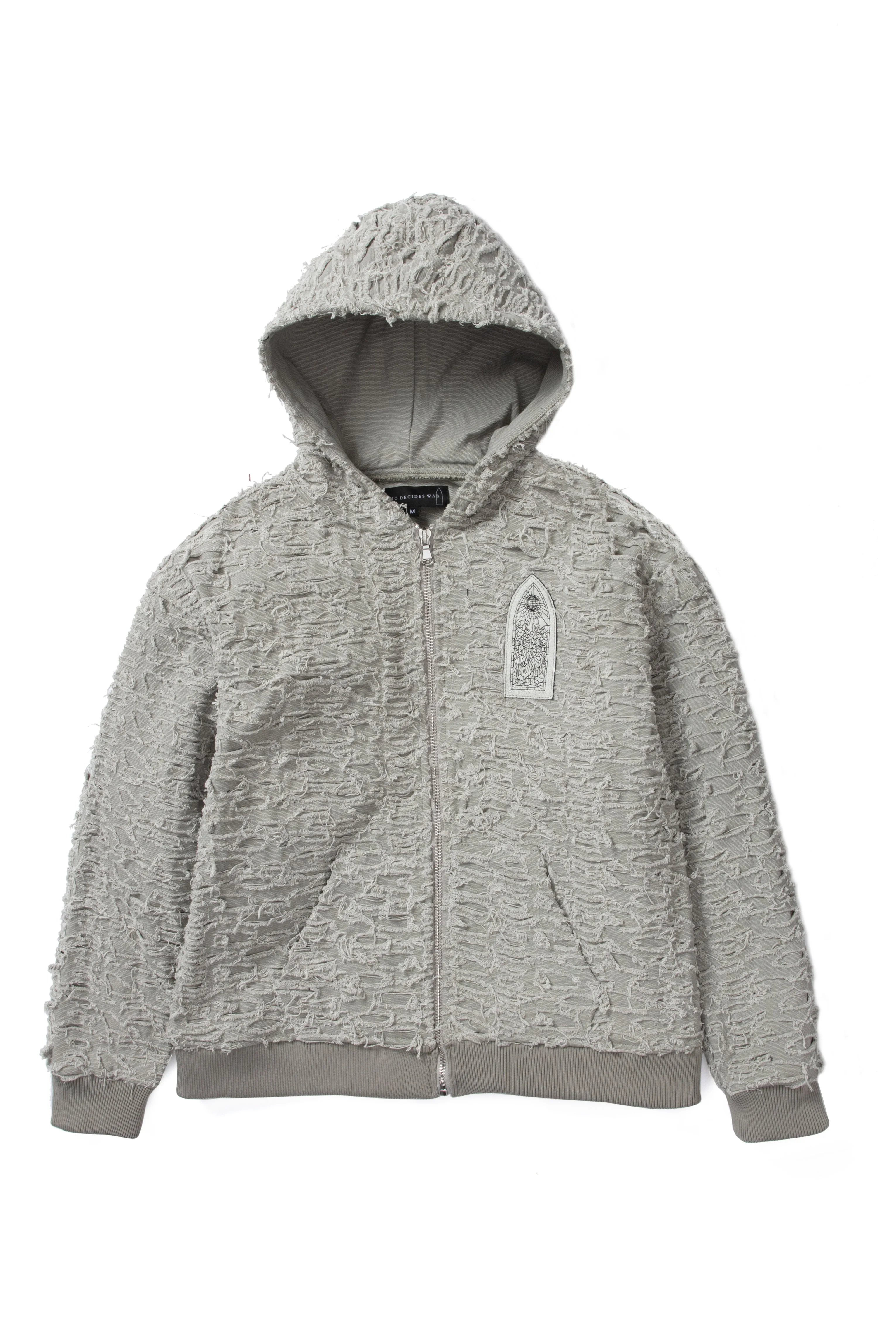 The Husk Zip Up is 100% cotton, featuring our stained glass motif, distressing throughout and a boxy, slightly cropped fit. Follow your normal size. Processing takes 1-2 days, shipping in the US 3-4 days, internationally 7-10 days.