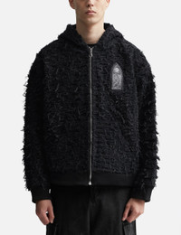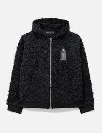 - Who Decides War - Husk Zip-up Jacket - Woven fringe details throughout - Zip closure - Cathedral embroidered patch at chest - Two front pockets - Color: Coal - Material: 100% Cotton - See more Hoodies and Clothing