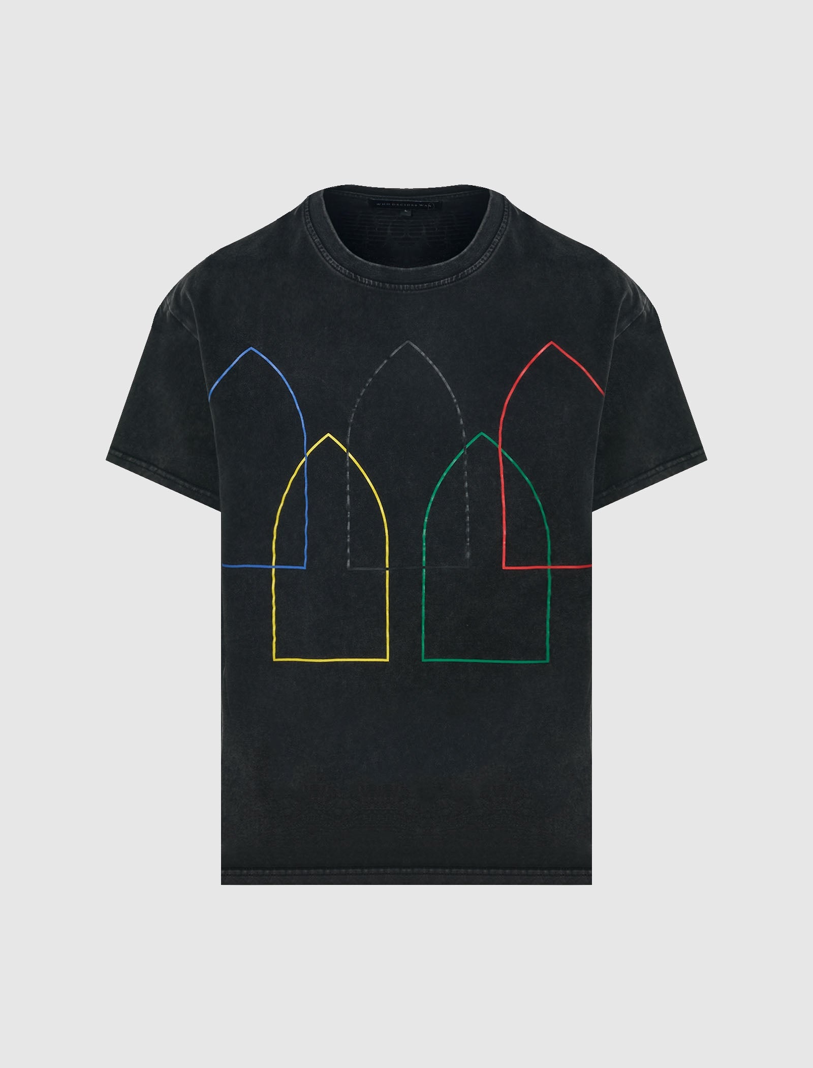 Regular-fit short sleeve cotton t-shirt. Crewneck. Graphic prints at front. Graphic text and logo text at back. Slight fading throughout. - 100% Cotton SKU: 1110350002SS24-COAL