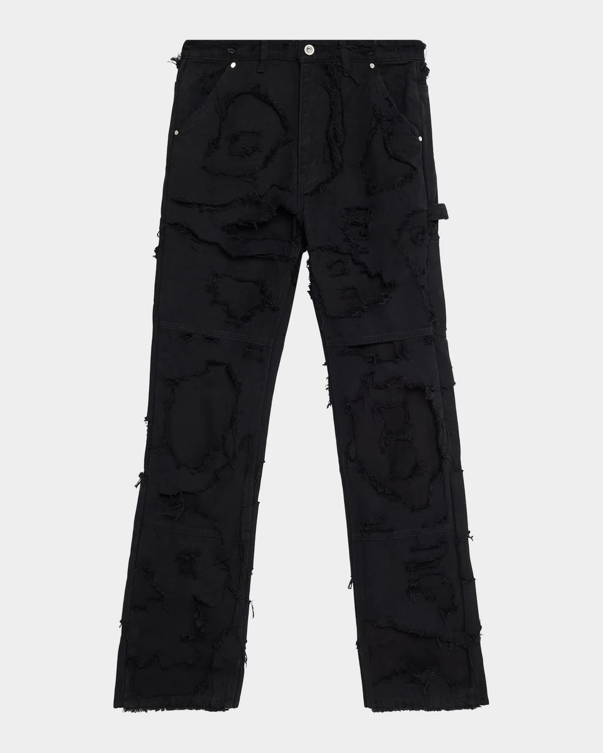 The WHO DECIDES WAR "Unearthed" pants are comprised of 100% cotton, embellished with a multiwash effect and repaired distressing throughout. Inseam approx. 35.5 inches Regular rise Fivepocket style Back label Slim fit through straight legs Buttonzip front; belt loops Cotton Hand wash or dry clean Imported