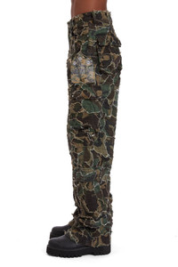 The Washed Camo Cargo Pants are comprised of 100% cotton and feature a baggy fit. The pants feature an inseam of 35.5 inches and are embellished with patched distressing and accented stained glass patches on either thigh. The base layer is comprised of our signature boro technique and is washed to give it a treated frayed effect. The branded jean buttons and rivets complete the look. If you are trying to decide on a size, you can follow your normal size for a standard fit. Processing takes 1-2 days, shipping in the US 3-4 days, internationally 7-10 days.