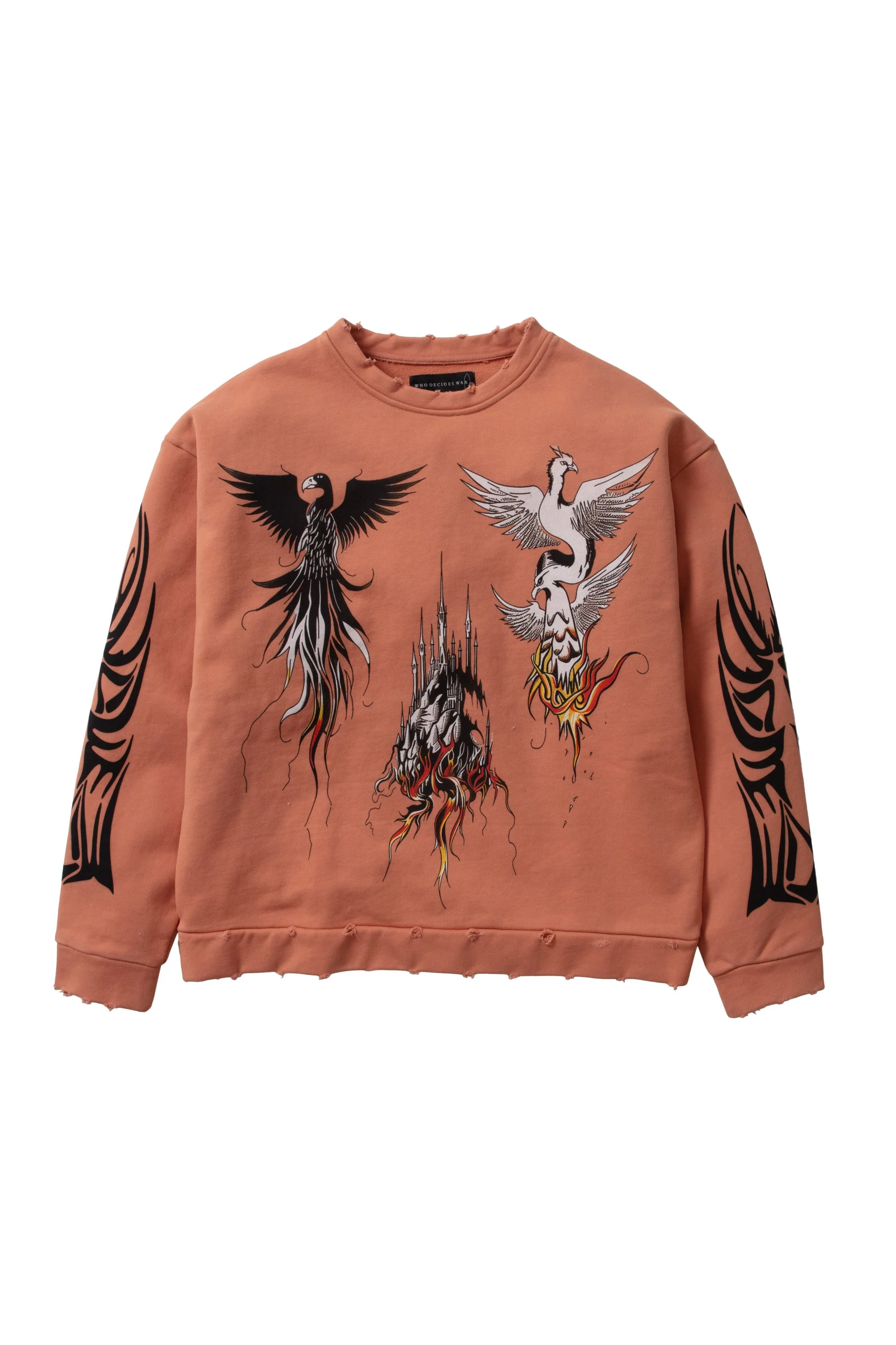 Constructed with 100% French Terry, this crewneck sweater showcases original artwork applied by screen print. The faded wash and dye treatment contributes a touch of style while the multi design placements add a distinctive touch. Featuring a boxy and slightly cropped fit, following your normal size is recommended. Processing takes 1-2 days, shipping in the US 3-4 days, internationally 7-10 days.