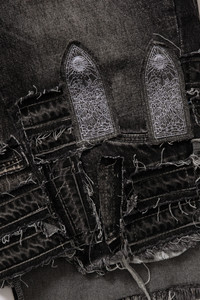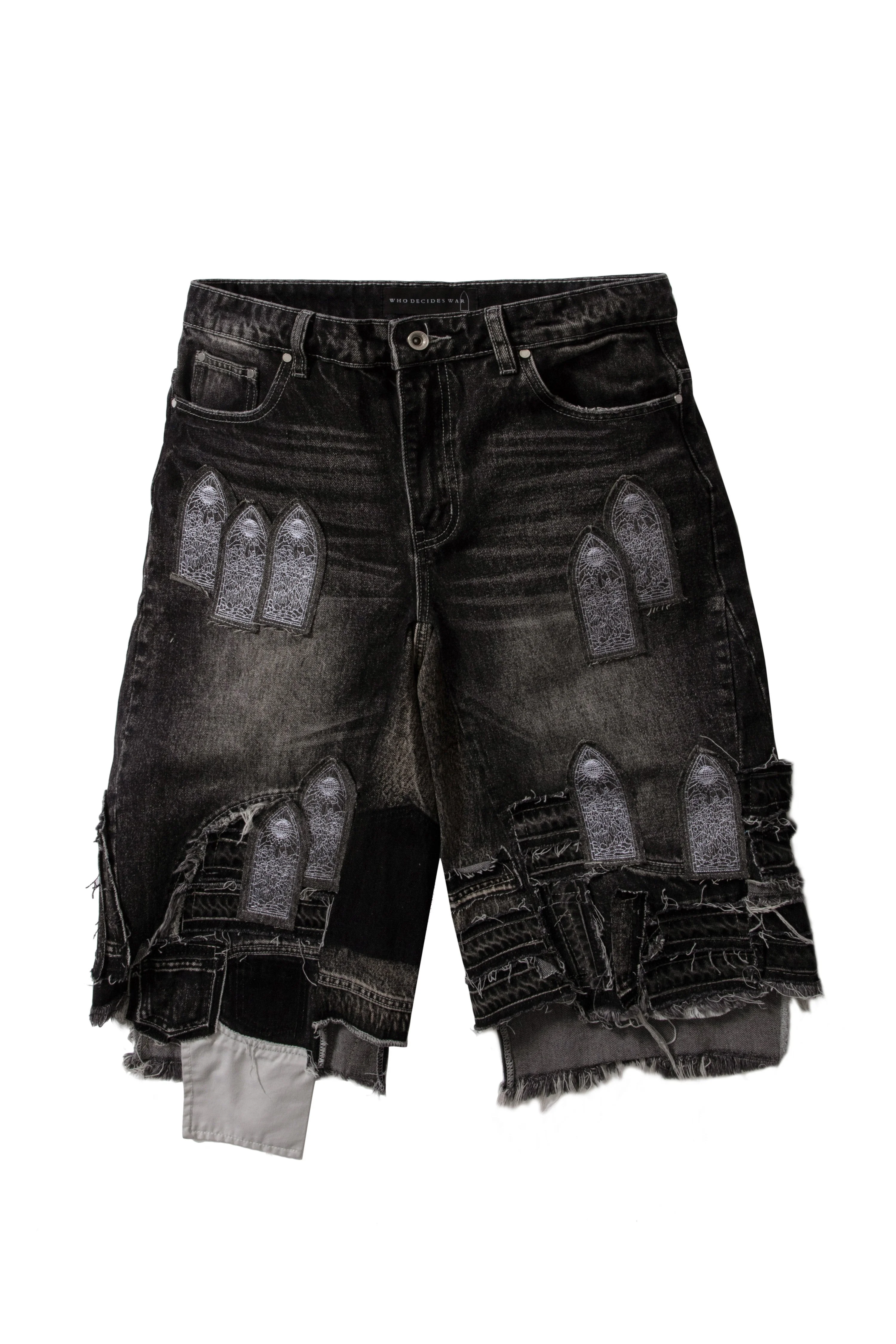 PATCHED ARCH BLOWOUT DENIM SHORT