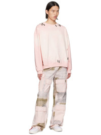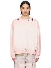 French terry sweatshirt. Fading, distressing, bleached effect, and graphic hardware throughout. · Rib knit crewneck, hem, and cuffs · Dropped shoulders · Logo-engraved gunmetal-tone hardware Supplier color: Guava