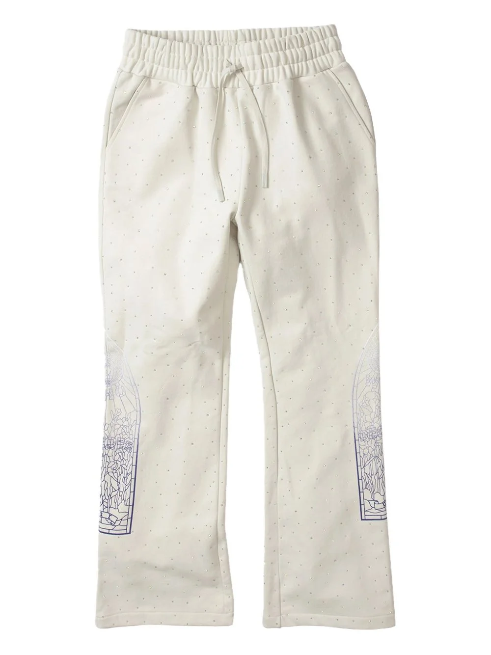 rhinestone track pants Highlights - White - Rhinestone embellishment - Graphic print - Elasticated waistband - Drawstring fastening Imported Composition Fabric 100% Washing instructions Read Manufacturer Guidelines