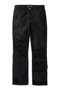 The Ruin Suit Pant are comprised of 100% cotton and features a straight leg fit. The pants inseam sit at 35.5 inches and are embellished with permanent creases, a multi wash effect and repaired distressing throughout. Following your normal size is recommended. Processing takes 1-2 days, shipping in the US 3-4 days, internationally 7-10 days.