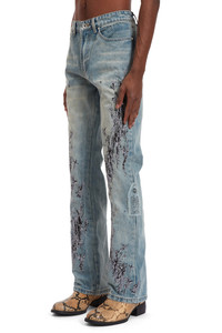 The Scratched Denim are comprised of 100% cotton and feature a slim fit. The pants feature an inseam of 35.5 inches and are embellished with embroidery throughout. Follow your normal size. Processing takes 1-2 days, shipping in the US 3-4 days, internationally 7-10 days.