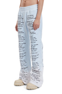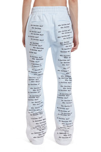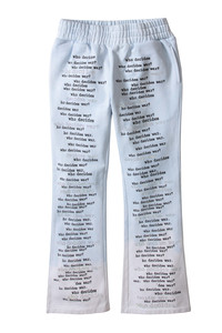 The WDW Scripture Sweatpants are comprised of 100% cotton and feature a straight fit. The pants feature an inseam of 35.5 inches and are embellished with embroidered patches throughout. Follow your normal size. Processing takes 1-2 days, shipping in the US 3-4 days, internationally 7-10 days.