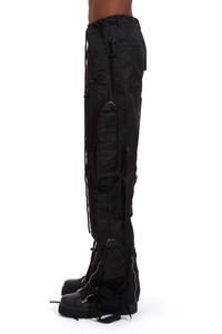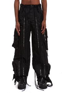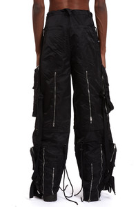 Constructed with 100% Nylon, the String Theory Cargo Pant showcases an adjustable drawstring design intended for styling and garment manipulation. Two stained glass motif cargo pockets are also placed on either leg in. Bottom zippers also allow for ventilation and tactical abilities along with the pants being functionally able to zip off and become shorts. Featuring an original baggy fit, following your normal size is recommended. Processing takes 1-2 days, shipping in the US 3-4 days, internationally 7-10 days.