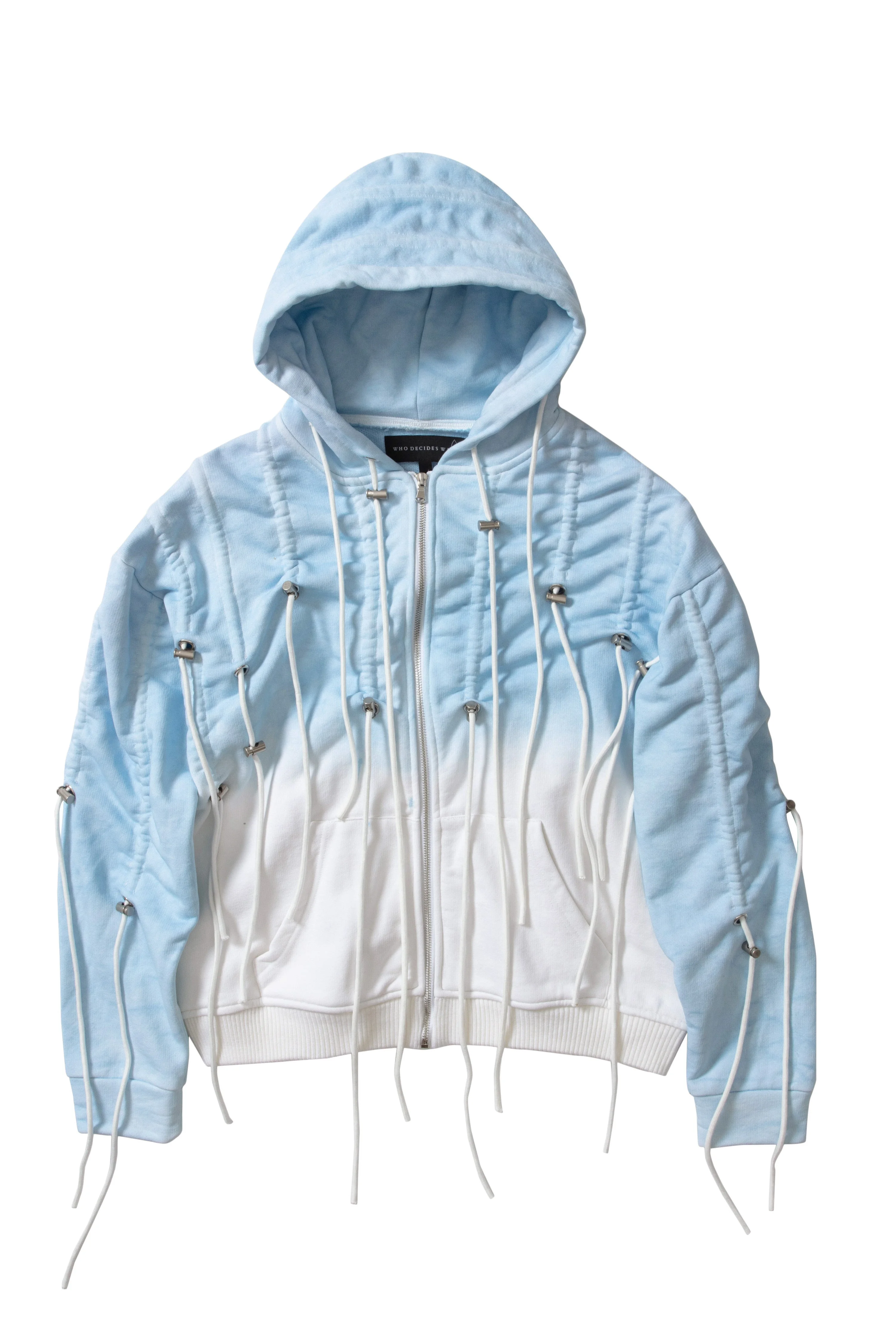 Constructed with 100% French Terry, this hooded zip up showcases an adjustable drawstring design intended for styling and garment manipulation. Featuring an original boxy and slightly cropped fit, following your normal size is recommended. Processing takes 1-2 days, shipping in the US 3-4 days, internationally 7-10 days.