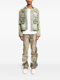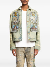 Unfurled embroidered-panel denim jacket Highlights - Light blue - Stonewash effect - Embroidered panel - Button closure - Long sleeves - Distressed detailing Made in United States Composition Cotton 100% Washing instructions Read Manufacturer Guidelines
