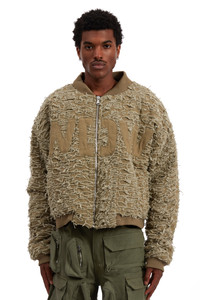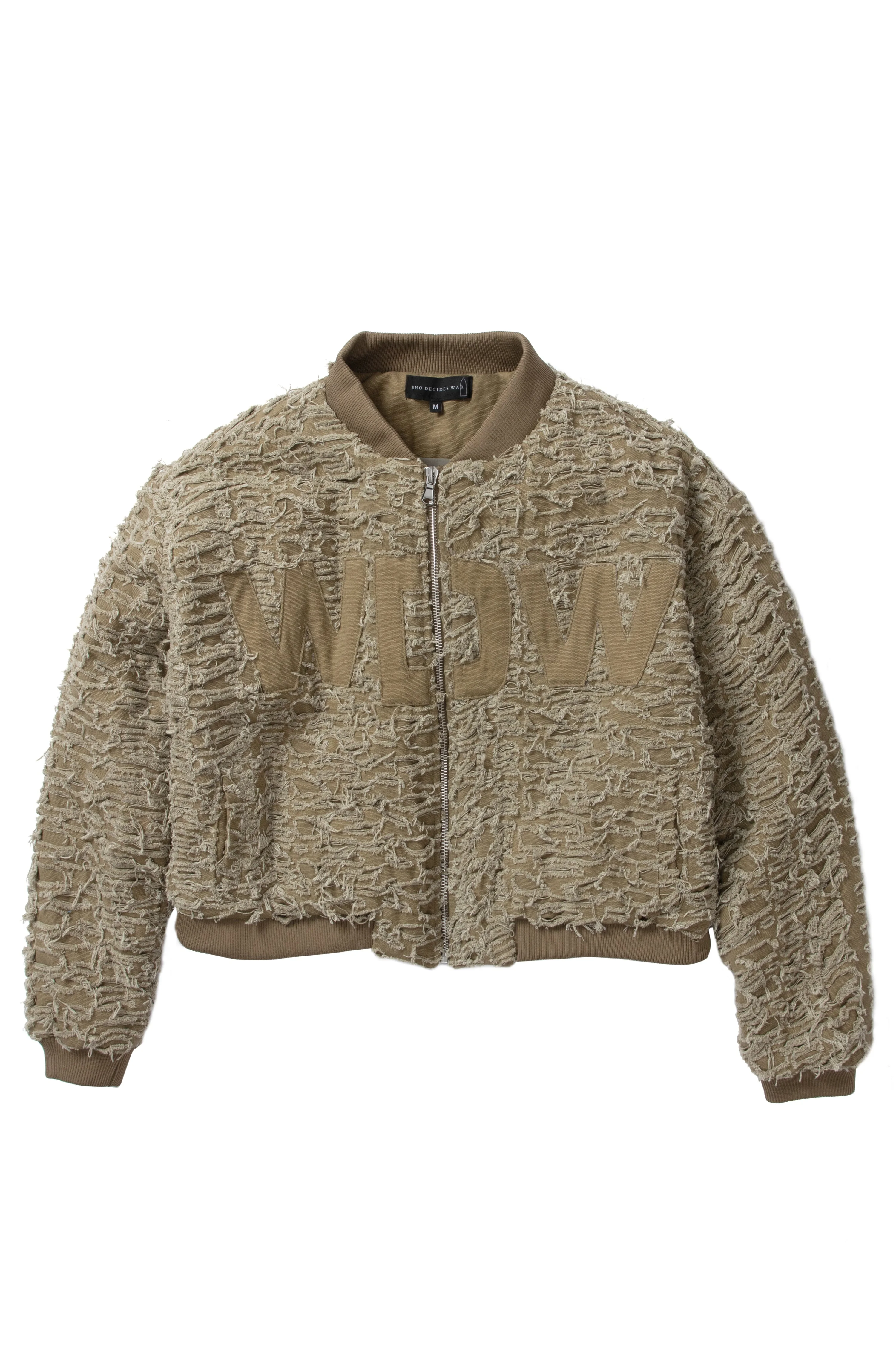 The WDW Husk Bomber is 100% cotton and features a traditional fit with a boxy, slightly cropped fit. Varsity letter embroidery, d istressing throughout. Follow your normal size. Processing takes 1-2 days, shipping in the US 3-4 days, internationally 7-10 days.
