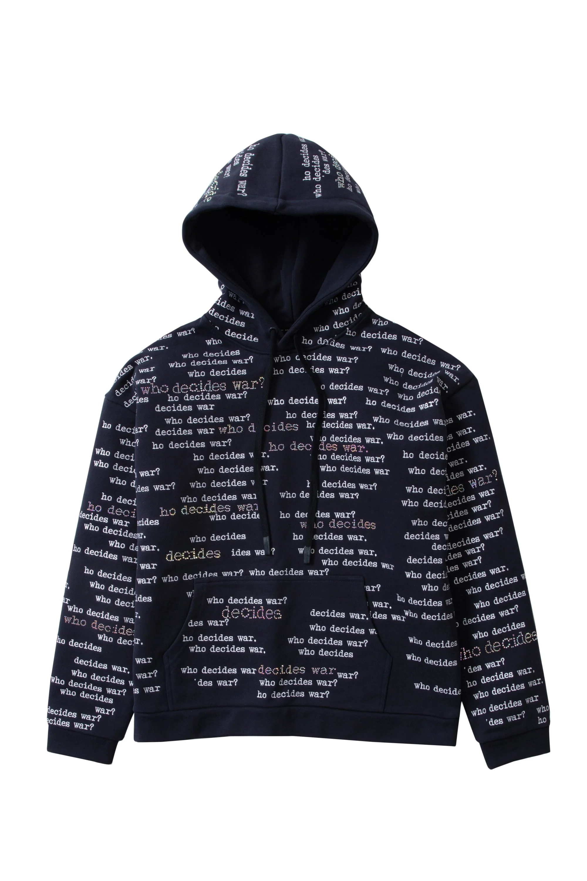 Constructed with 100% French Terry, this hooded pullover showcases original embroidered artwork with rhinestone overlay application. The multi layer design placements contribute a distinctive touch. Featuring a boxy and slightly cropped fit, following your normal size is recommended. Processing takes 1-2 days, shipping in the US 3-4 days, internationally 7-10 days.