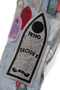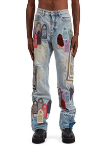 The Pastel Denim are comprised of 100% cotton and feature a flared cut. The pants feature an inseam of 35.5 inches and are embellished with embroidered leather patches, throughout. Follow your normal size. Processing takes 1-2 days, shipping in the US 3-4 days, internationally 7-10 days.