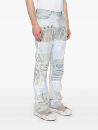 light blue concealed fly and button fastening classic five pockets patchwork design ripped detailing Size & Fit Model Measurements: Height: 1.88 m Bust/Chest: 95.0 cm Hips: 98.0 cm Waist: 79.0 cm Model wears size 32 Fabric and Care Designer Style ID: WDWWINGEDORGANZADENIM Designer Colour: SKY BLUE Composition: Cotton 100% Washing instructions: Machine Wash