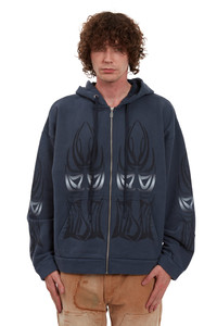 Constructed with 100% French Terry, this zip up showcases original screen printed artwork, a drawstring hoodie and treated fabric to resemble fading. Featuring a regular fit, following your normal size is recommended. Processing takes 1-2 days, shipping in the US 3-4 days, internationally 7-10 days.