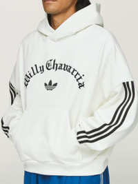 A clean, modern take on the classic Adidas hoodie, this collaboration piece features a relaxed fit and premium cotton blend fabric for comfort and durability. The off-white color offers a versatile, understated look. Key branding includes an oversized embroidered Trefoil logo on the chest and subtle “Chavarria” detailing, blending streetwear edge with Adidas heritage. Composition: French Terry 100% Cotton, 490Gsm, 2X2 Rib Off White – neutral and versatile color Kangaroo pocket, ribbed cuffs and hem Adjustable drawcord hood SKU: JW1445