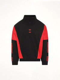 Adidas x Willy Chavarria's Adidas X Chavarria Watsonville Mockneck in Black/Red is a bold and stylish piece that combines modern design with classic sportswear elements. This mockneck top is perfect for making a statement while ensuring comfort and versatility. - Composition: HEAVY COTTON FLEECE &SHINY FLEECE - Features a striking black and red colorway. - Designed with a mockneck collar for a contemporary look. - Part of the exclusive collaboration between Adidas and Willy Chavarria. - Ideal for both casual and athletic wear. - Emphasizes a modern, urban aesthetic. - Made in: nan Model is 187 cm and wears size M SKU: KD9347