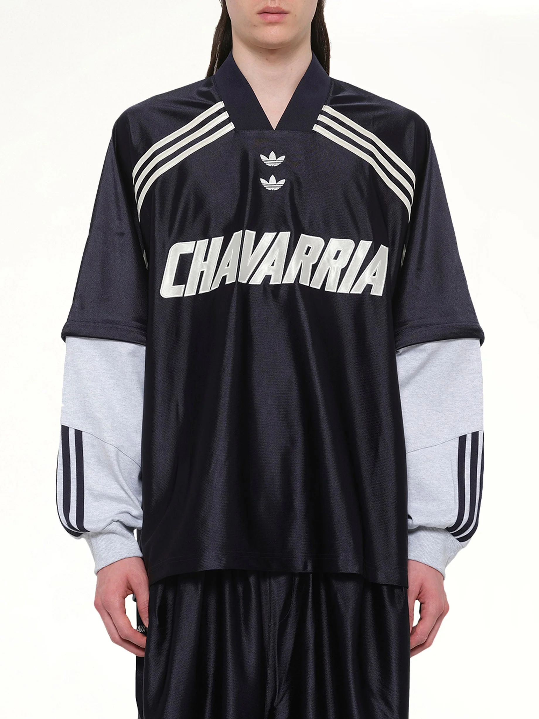 Adidas x Willy Chavarria's Adidas x WC Dazzle Longsleeve T-Shirt in Ink Navy is a stylish collaboration piece that combines modern design with classic sportswear elements. This long sleeve t-shirt offers a unique aesthetic with its bold color and sleek silhouette. - Composition: Shiny Dazzle Tricot/ Heavy Single / Jersey - Features a striking Ink Navy colorway - Long sleeve design for added coverage - Collaborative piece with designer Willy Chavarria - Signature Adidas branding for authenticity - Comfortable fit suitable for everyday wear - Made in - Model is 187 cm and wears size M SKU: KD1799