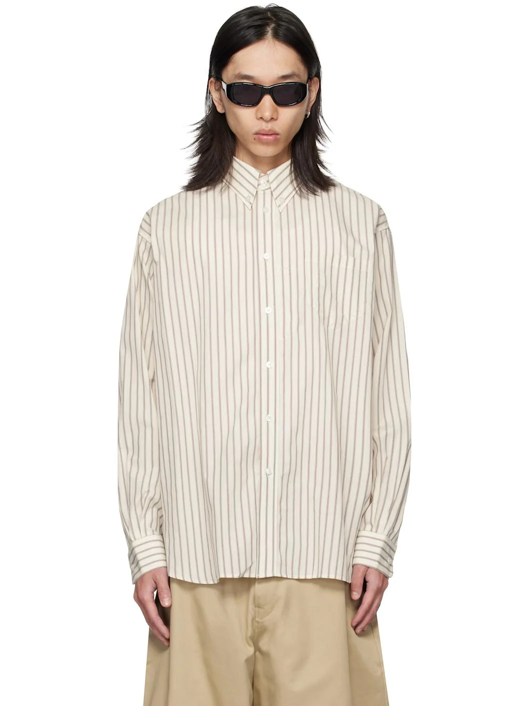 Cotton poplin shirt. · Striped throughout · Buttoned-down spread collar · Button closure · Patch pocket at chest · Shirttail hem · Pleats at buttoned barrel cuffs · Logo and inverted box pleat at back yoke Supplier color: Bordeau 100% cotton. Made in Portugal 252232M192050