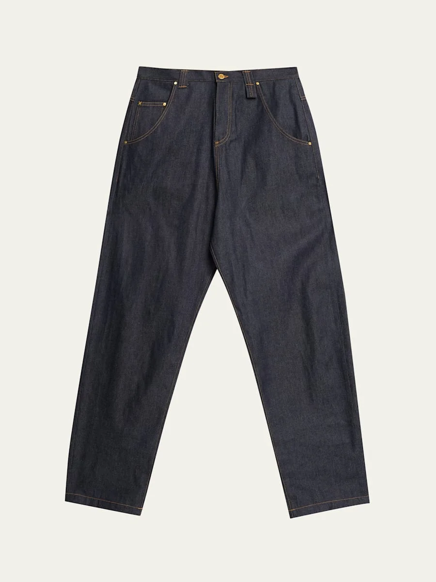 Willy Chavarria "Bad Boy" jeans crafted from cotton denim High rise Fivepocket style Wide, tapered legs Full length Signature 'W' belt loops Cotton Machine wash cold Made in USA from imported materials