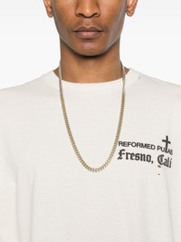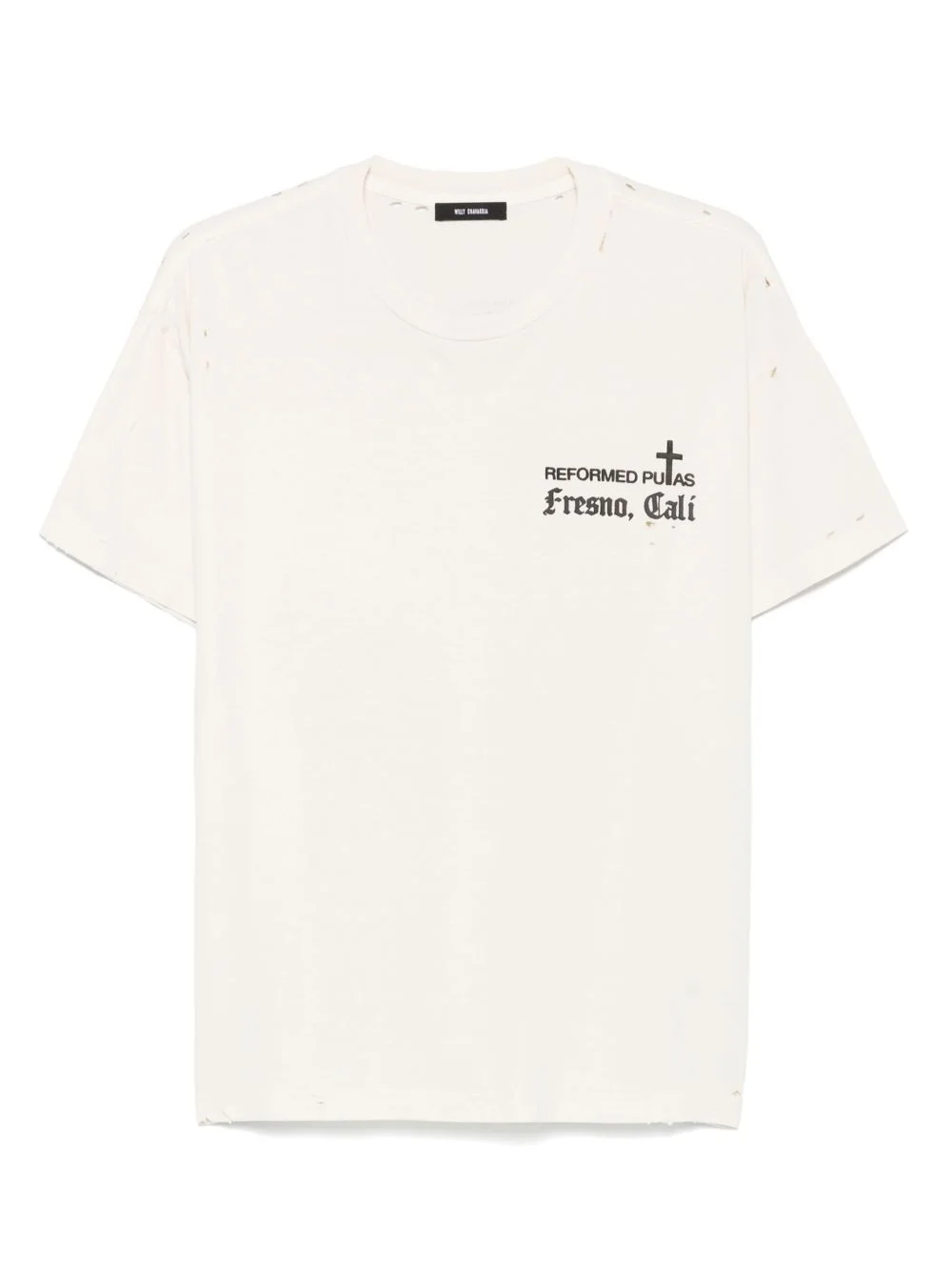 Reformated T-shirt Highlights - Light beige - Crew neck - Short sleeves - Embroidered motif - Text print Made in United States Composition Cotton 100% SIZE & FIT Model measurements Height 6 ft 2 in(1.87 m) Bust/Chest 37 in(94 cm) Hips 33.85 in(86 cm) Waist 27.95 in(71 cm) FittingInformation Designed for a boxy fit, intended for a loose fit throughout Made from a midweight non-stretch fabric, this piece offers minimal elasticity when worn