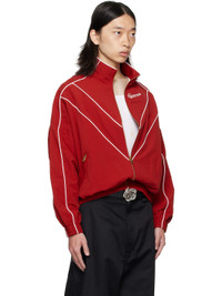 Nylon taffeta jacket. · Piping throughout · Stand collar · Zip closure · Logo embroidered at chest · Zip pockets at waist · Elasticized hem and cuffs · Dropped shoulders · Welt pocket at interior · Full mesh lining Supplier color: Red Body: 100% nylon. Lining: 100% polyester. Pocket lining: 100% nylon. Made in South Korea 252232M180019