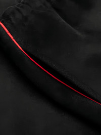 Ruff Rider side-stripe trousers Highlights - Black - Red side stripe - Embroidered logo - Elasticated waistband - Welt pocket Made in United States Composition Recycled Polyester 100% Washing instructions Read Manufacturer Guidelines