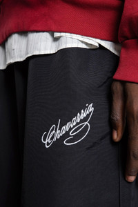 DESCRIPTION - Runway style - Black - Elastic waistband with drawstrings - Piping trim - Side pockets - Back pocket - Relaxed fit DETAILS - Made in: United States - Composition: 100% Polyamide - Model code: WCBTM0039 001 - Item ID: 9605697012054