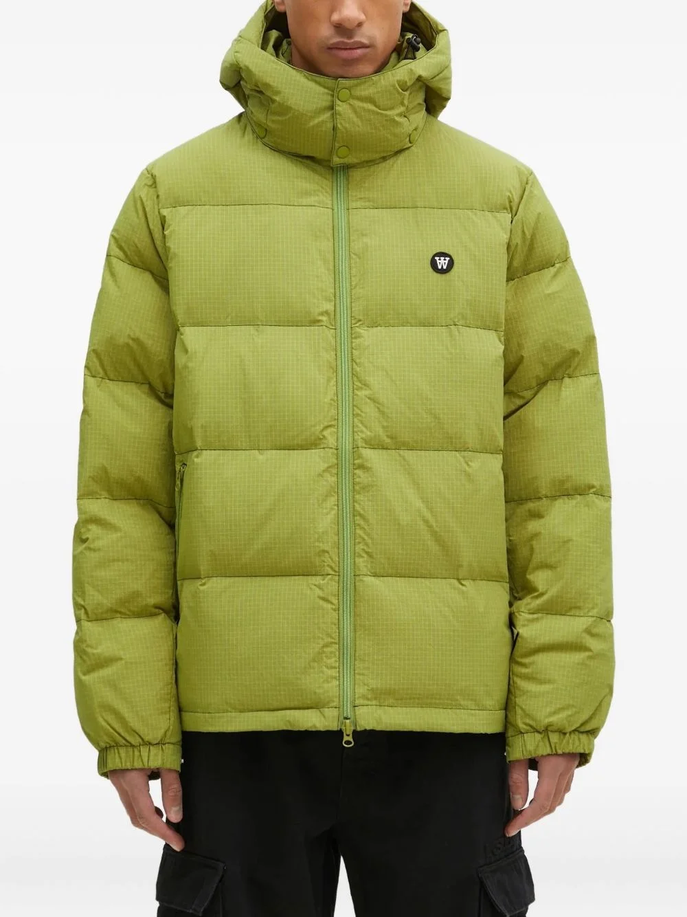 hooded ripstop puffer jacket Highlights - Lime green - Ripstop pattern - Hooded neckline - Front zip fastening - Side zip-fastening pockets - Applique logo Imported Composition Lining: Polyester 100% Outer: Polyester 100%