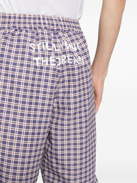 plaid check-print shorts Highlights - Red/white/blue - Plaid check print - Lace-up detailing - Rear elasticated waistband - Applique lettering Imported Composition Body: Polyester 100% Lining: Polyester 100% SIZE & FIT Model measurements Height 6 ft 2 in(1.87 m) Bust/Chest 34.25 in(87 cm) Hips 36.22 in(92 cm) Waist 29.52 in(75 cm) FittingInformation Designed for a regular fit, offering an even fit over the leg Adjust this piece’s waistband to your preference using the drawstring Made from a midweight non-stretch fabric This piece fits true to size – take your usual size Washing instructions Machine Wash