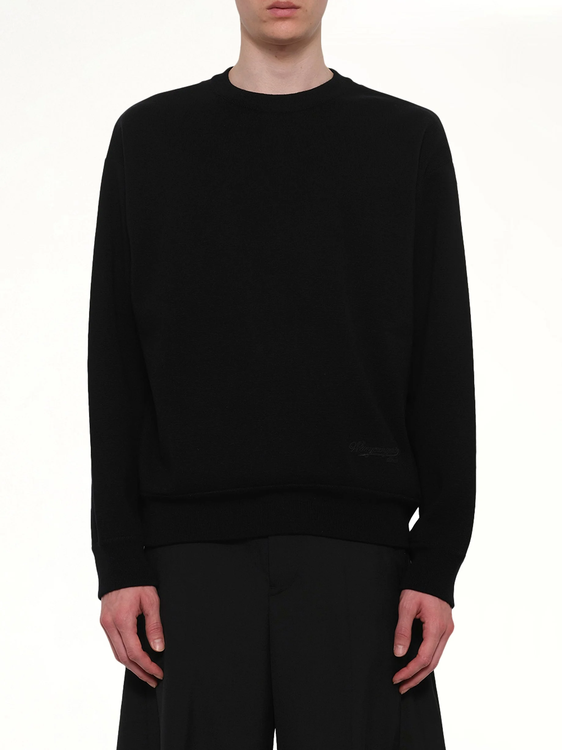 Wooyoungmi's Baseball Logo Sweater in Black is a stylish and contemporary piece that combines sporty elements with high fashion. Perfect for casual outings or adding a touch of edge to your wardrobe. - Composition: 100% Wool - Features a bold baseball-inspired logo on the front. - Designed with a relaxed fit for comfort and ease of movement. - Ribbed cuffs and hem for a classic sweater finish. - Versatile black color that pairs well with various outfits. - Made in South Korea Model is 187 cm and wears size 48 SKU: W261KN01501B