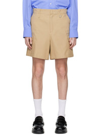 Cotton drill shorts. · Belt loops · Four-pocket styling · Zip-fly · Silver-tone logo hardware at front · Flap pockets at outseams · Darts at back waistband Supplier color: Beige 100% cotton. Made in South Korea 231704M193001