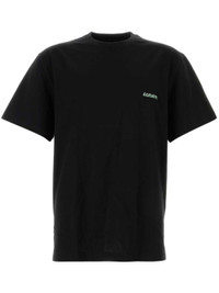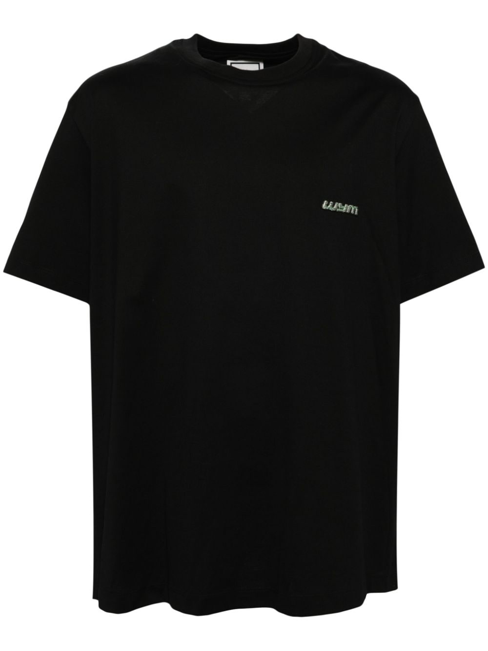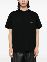 black cotton logo embellishment graphic print to the rear silver-tone trim round neck short sleeves Size & Fit Model Measurements: Bust: 0cm Height: 0cm Hips: 0cm Waist: 0cm Fabric and Care Designer Style ID: W243TS03 Designer Colour: 708B BLACK Composition: Cotton 100% Washing instructions: Read Manufacturer Guidelines Made in Republic of Korea