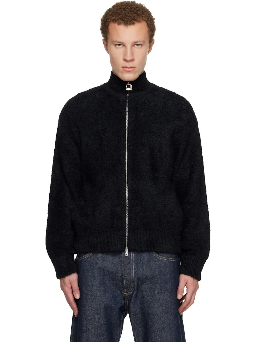 Shag-knit nylon sweater. · Mock neck · Two-way zip closure · Logo embroidered at front · Rib-knit hem and cuffs · Seam pockets · Logo hardware at back collar · Logo-engraved silver-tone hardware Supplier color: Black 100% nylon. Made in South Korea 252704M202000