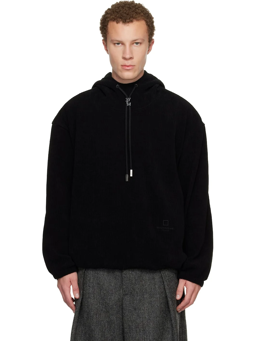 Stretch rib-knit hoodie. · Drawstring with logo hardware at hood · Logo embroidered at front · Concealed bungee-style drawstring at hem · Seam pockets · Dropped shoulders · Pleat at sleeves · Logo hardware at back collar · Logo-engraved silver-tone hardware Supplier color: Black 98% polyester, 2% polyurethane. Made in South Korea 252704M202009