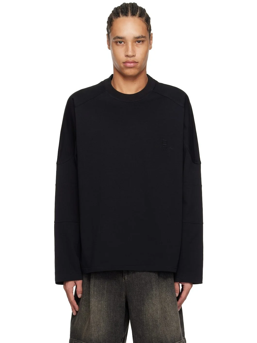 Black Shoulder Cut Long Sleeve T-shirt