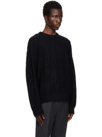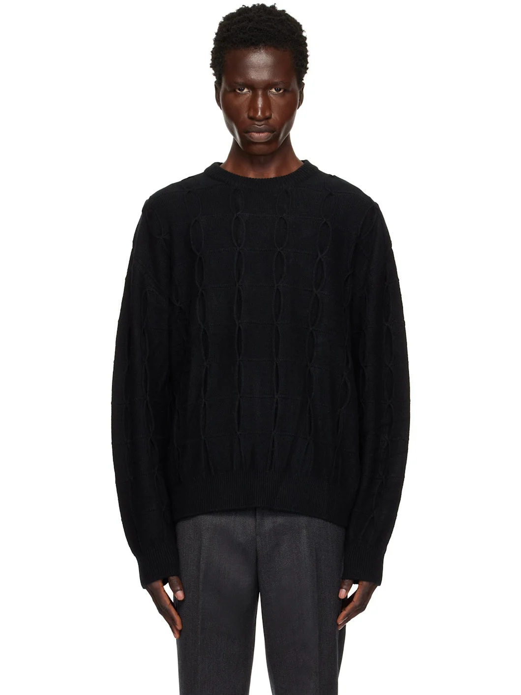 Knit wool-blend sweater. Pinched seams and jacquard graphic pattern throughout. · Rib-knit crewneck, hem, and cuffs · Logo hardware at back collar Supplier color: Black 78% wool, 22% nylon. Made in South Korea 242704M201004