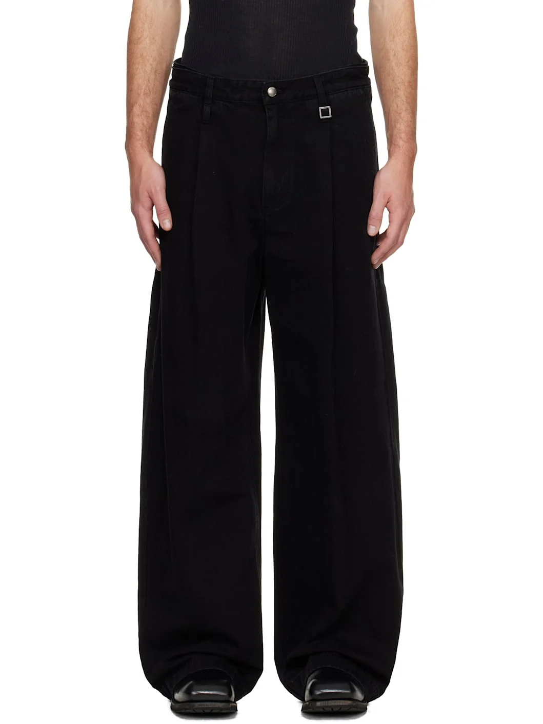 Non-stretch denim jeans. · Subtle fading throughout · Belt loops · Four-pocket styling · Zip fly · Pleats at front and back · Logo-engraved silver-tone hardware Supplier color: Black 100% cotton. Made in South Korea 252704M186003