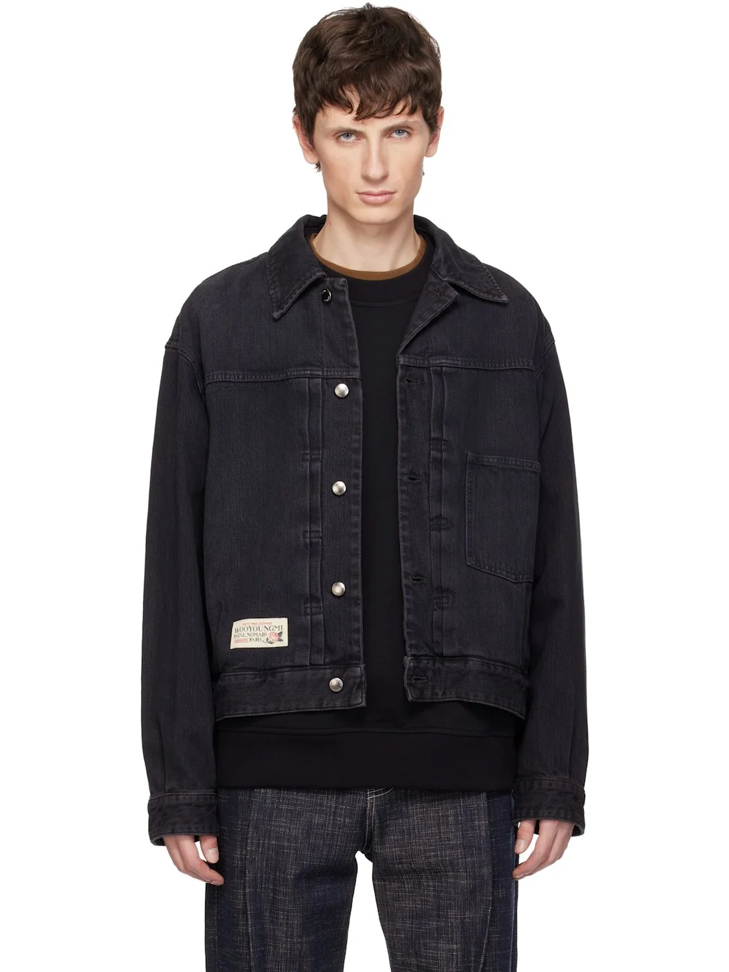 Non-stretch denim jacket. · Fading throughout · Spread collar · Button closure · Patch pocket at chest · Welt pockets and logo patch at front · Buttoned barrel cuffs · Logo hardware at back collar · Cinch strap at back · Logo patch at back hem Supplier color: Black 100% cotton. Made in South Korea 252704M177001