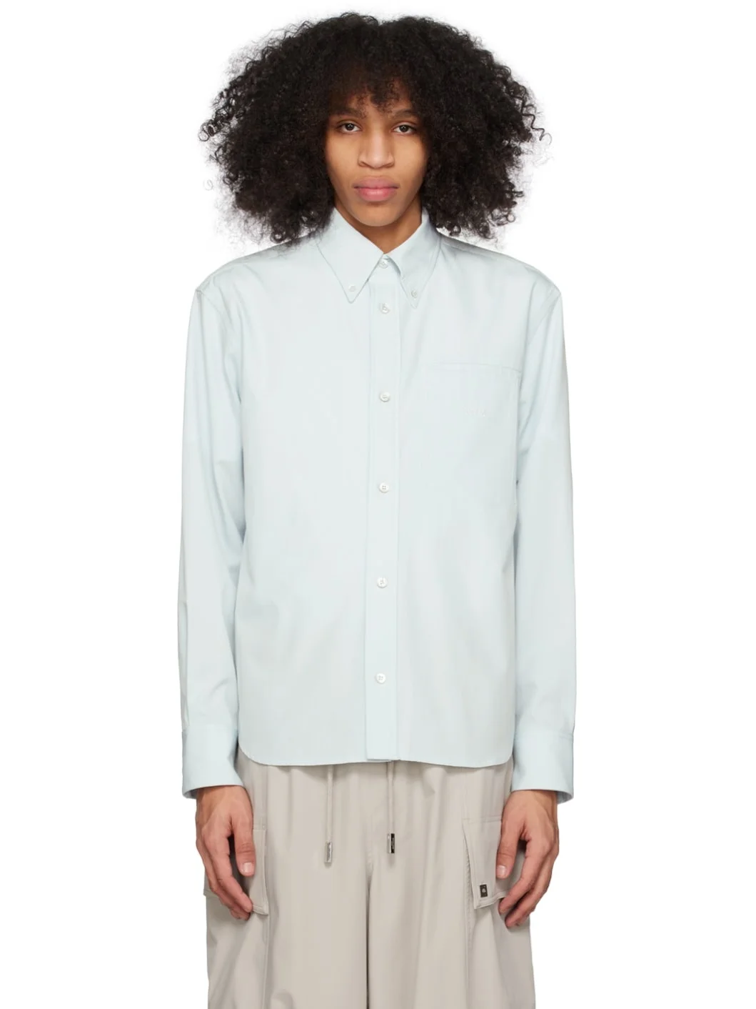 Polyester- and cotton-blend canvas shirt. · Spread collar · Button closure · Logo embroidered at patch pocket · Shirttail hem · Two-button barrel cuffs · Logo hardware at back collar · Central box pleat at back yoke · Logo-engraved silver-tone hardware Supplier color: Blue 63% polyester, 37% cotton. Made in South Korea 231704M192020
