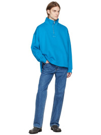 French terry sweatshirt. · Half-zip closure at mock neck · Logo embroidered at front · Vented side seams · Rib knit cuffs · Logo hardware at back collar · Logo-engraved silver-tone hardware Supplier color: Blue Body, 100% cotton. Trim: 92% cotton, 6% polyester, 2% spandex. Made in South Korea 231704M202001