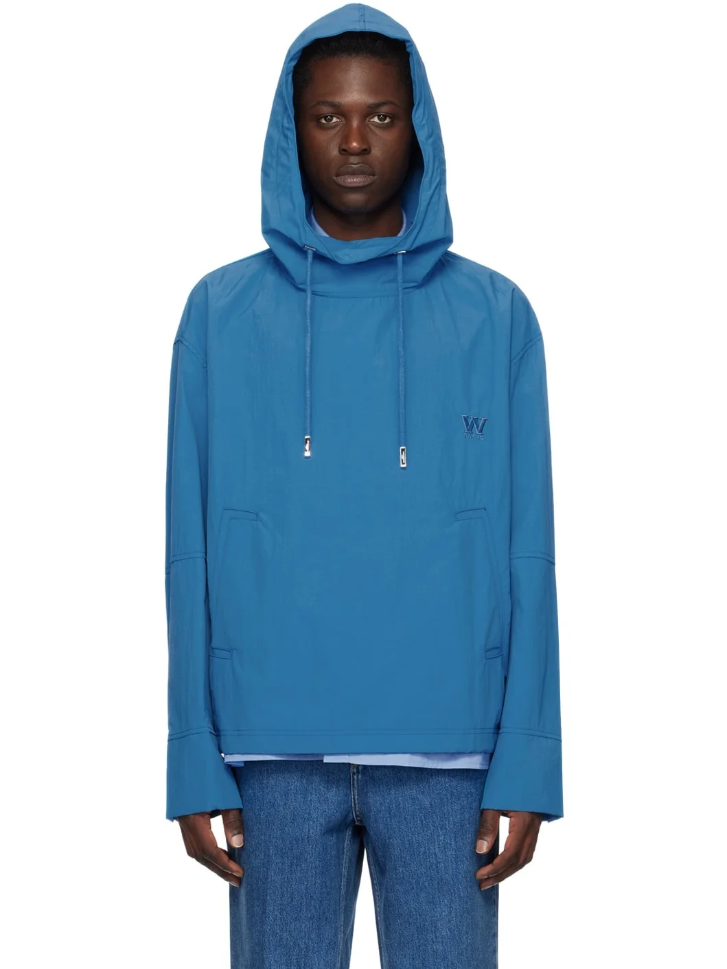 Nylon taffeta jacket. · Drawstring at hood · Logo embroidered at chest · Kangaroo pocket · Concealed bungee-style drawstrings at hem · Press-stud fastening at cuffs · Logo hardware at back collar Supplier color: Blue 100% polyamide. Made in South Korea 231704M180009
