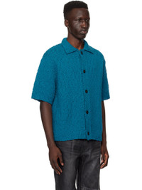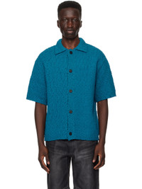 Open knit cotton cardigan. · Spread collar · Button closure · Logo plaque at back collar Supplier color: Blue 100% cotton. Made in South Korea 241704M200001