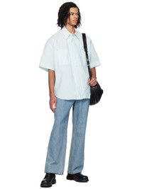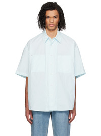 Crinkled nylon- and cotton-blend taffeta shirt. · Spread collar · Button closure · Concealed bungee-style drawstring at placket · Patch pocket · Bungee-style drawstring at waist · Shirttail hem · Dropped shoulders · Logo hardware at back collar · Patch pocket at interior · Logo-engraved silver-tone hardware Supplier color: Blue 74% nylon, 26% cotton. Made in South Korea 241704M192010