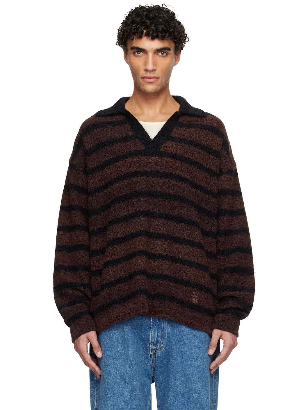 Knit polo. · Stripes throughout · Open placket · Tennis-tail hem · Dropped shoulders Supplier color: Mud 69% polyester, 14% wool, 10% nylon, 7% acrylic. Made in South Korea 252704M212001