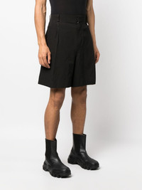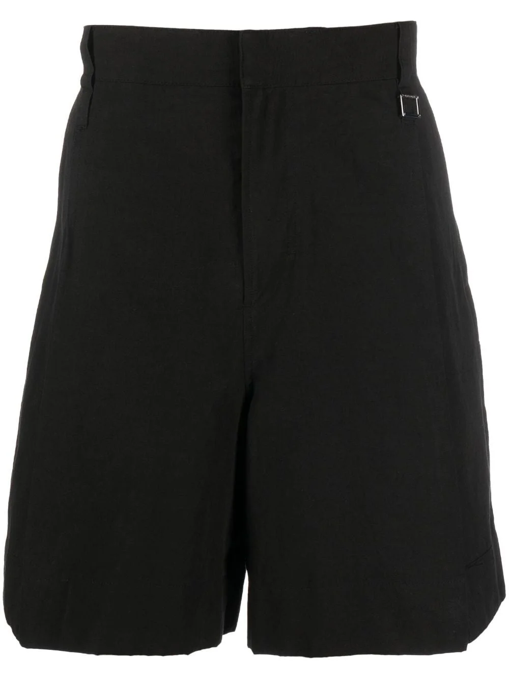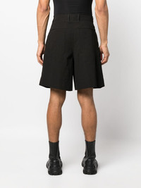 cotton-hemp blend bermuda shorts Highlights - Jet black - Cotton-hemp blend - Mid-rise - Pleat detailing - Embroidered logo to the rear - Belt loops - Hook and zip fly fastening - Two side inset pockets Imported Composition Outer: Linen/Flax 20% SIZE & FIT Model measurements Height 6 ft 2 in(1.87 m) Bust/Chest 38.18 in(97 cm) Hips 36.61 in(93 cm) Waist 29.13 in(74 cm) FittingInformation Designed with a wide leg, offering a loose and roomy fit Made from a midweight non-stretch fabric This piece fits true to size – take your usual size