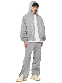 Reflective nylon taffeta track pants. · Paneled construction · Bungee-style drawstring at elasticized waistband · Three-pocket styling · Zip-fly · Zip vent at knees and cuffs · Bungee-style drawstring at cuffs · Full mesh lining Supplier color: Grey